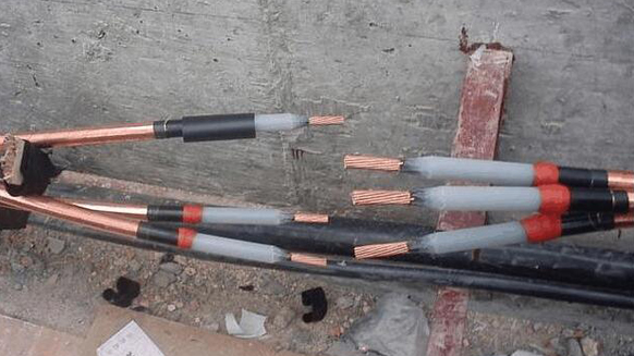 在戶外電纜的線心端部套上防雨罩,用自粘性橡膠帶加以固定。戶內電纜可省去此項。